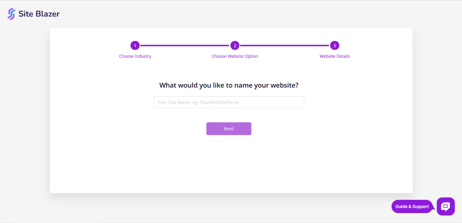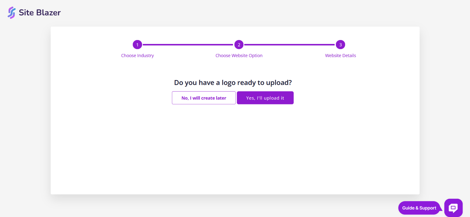 Enter your website name. It asks you to upload a logo, which you can do right away or choose to upload later.