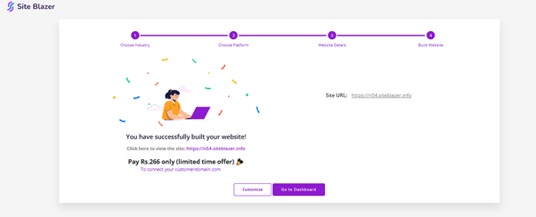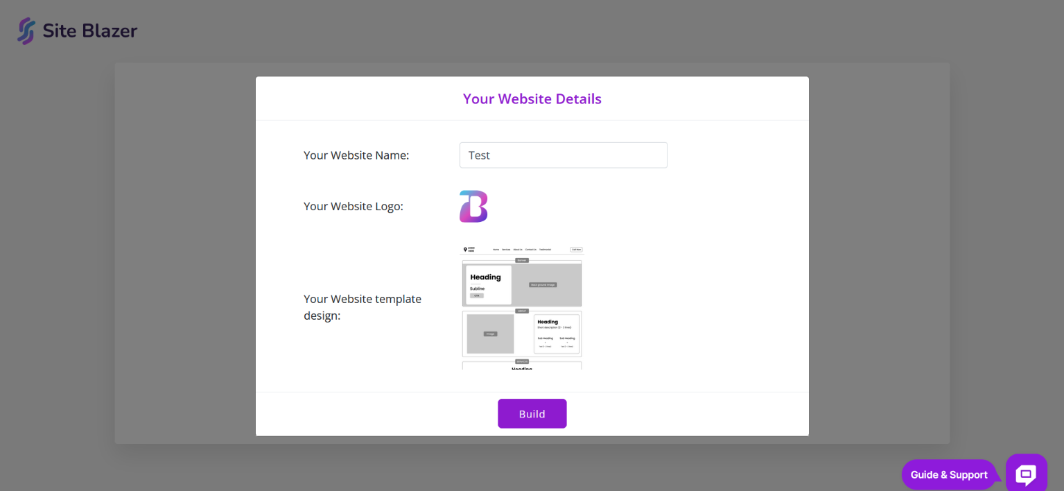 Click "Build Website" to start generating your site based on your inputs, like template and business type.