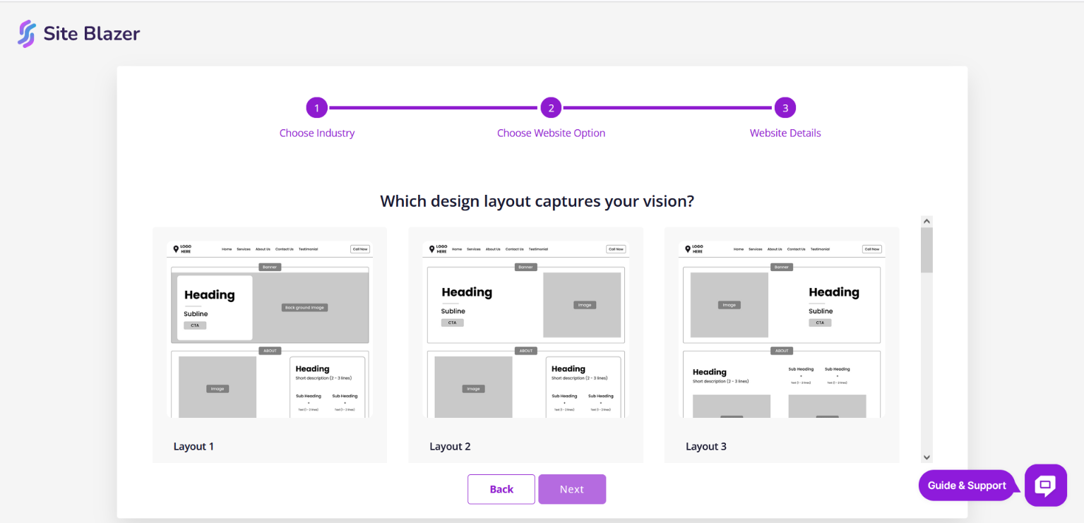 · Once done, a draft of your website, you need to select the template, and it will be generated, ready for review, further edits, or launch.