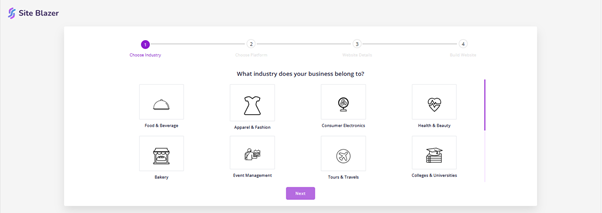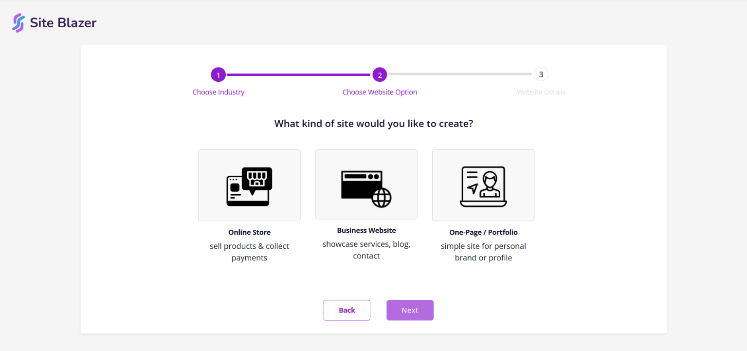 · After selecting your business type, you’ll be taken to the next step to choose a website platform.