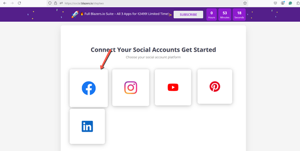 - After successfully logging in to your Social Blazer account, navigate to the dashboard and select the Facebook option from the available social media platforms to begin managing your Facebook settings or connecting your Facebook account.