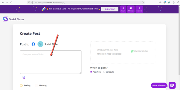 - After that, you will be redirected to a page where you can create and publish posts directly on your Facebook Page. Additionally, you can also manage and post content through your Social Blazer account dashboard, making it easier to handle all your Facebook activities from one place.