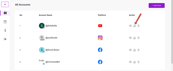 In your Social Blazer dashboard, you can find the ‘Analytics’ option, which allows you to view detailed insights and performance metrics for your social media posts.
